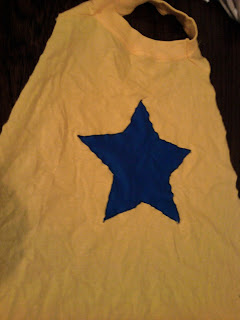 So, there is an amazing blog called made, who have just recently had an 'about the boy' feature. There were some amazing ideas, but the one I loked the best (mostly because it was very simple!) was the cape idea from SIDAC which is so great but actually involves no sewing. Just a large mens top and some scissors! (seriously I made about seven in one night!) She does have a logo on hers but not on the tutorial so I decided to make something up so it looked superheroish.